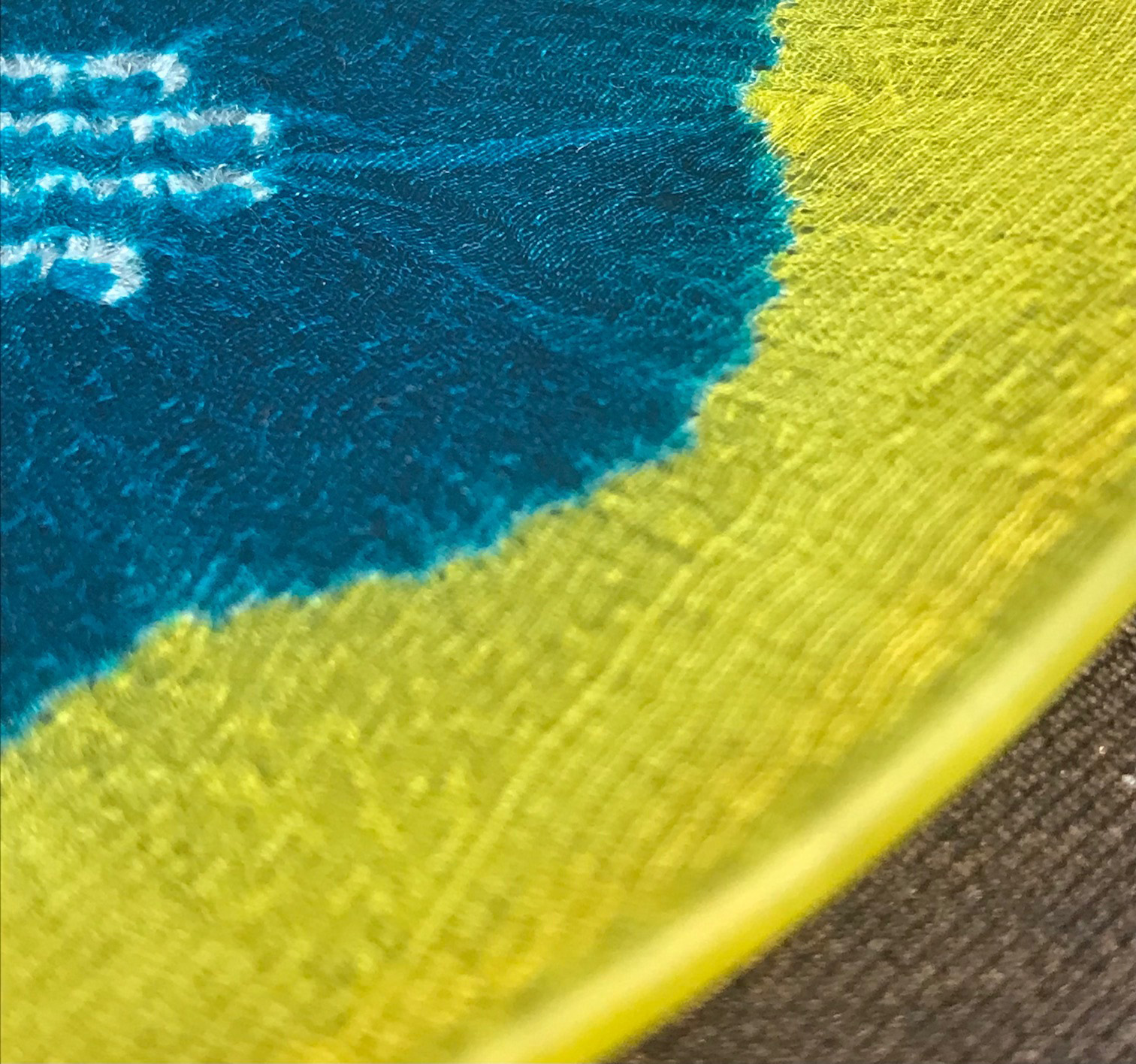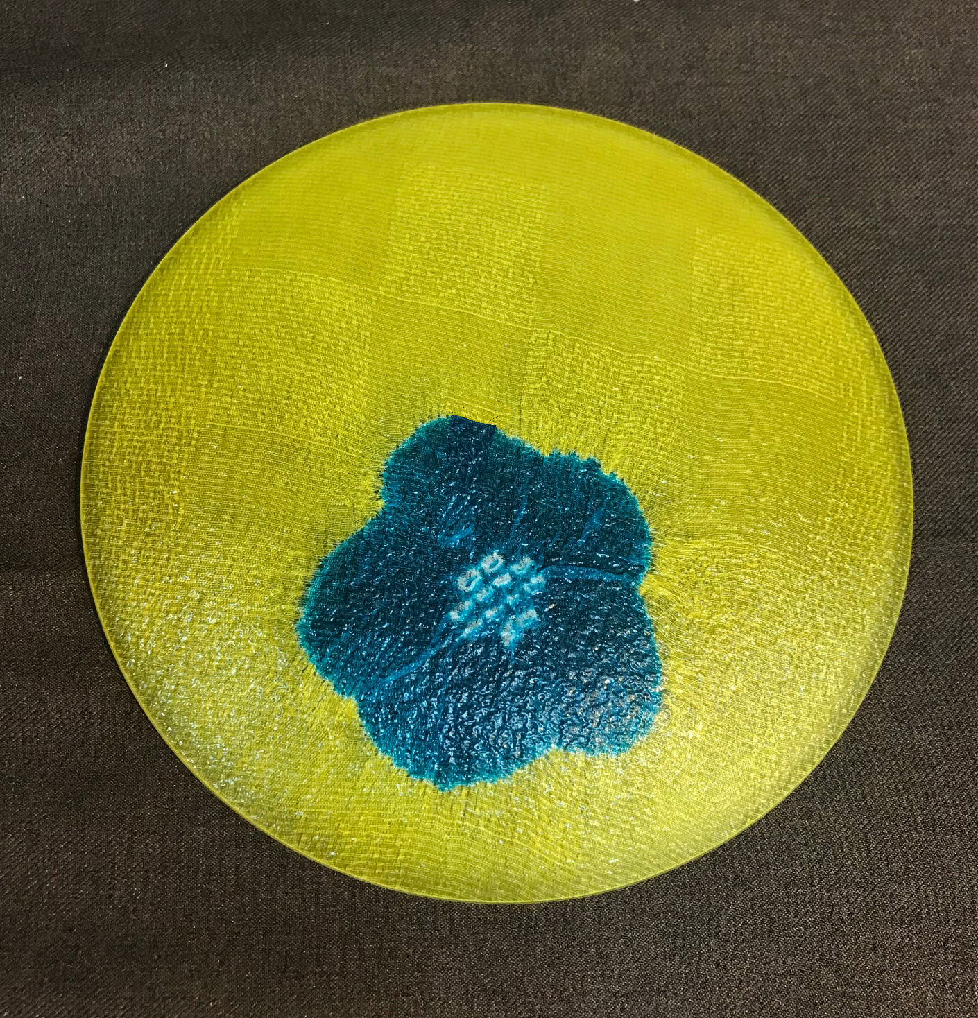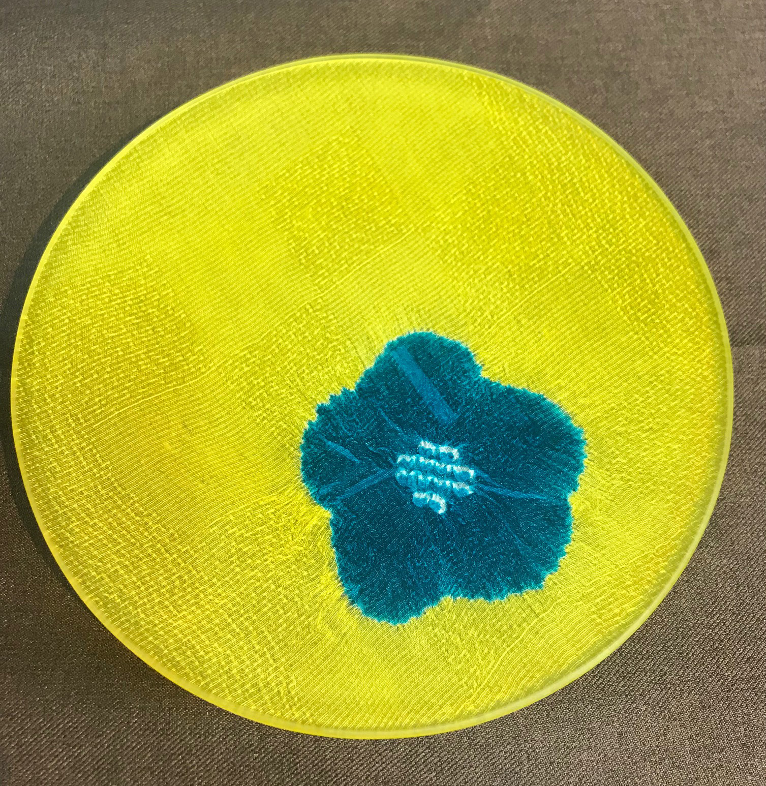 ♢お客様から素材をお預かりして、15㎝丸皿ガラス食器に加工した場合の加工賃になります。画像は、黄色帯揚げ(梅絞り)を事例に掲載しています。このサイズのお皿を希望される場合は、「カートに入れる」をクリック、購入へ操作を進めてください。この作品をご希望の場合は、【製品販売】の方でご購入願います。