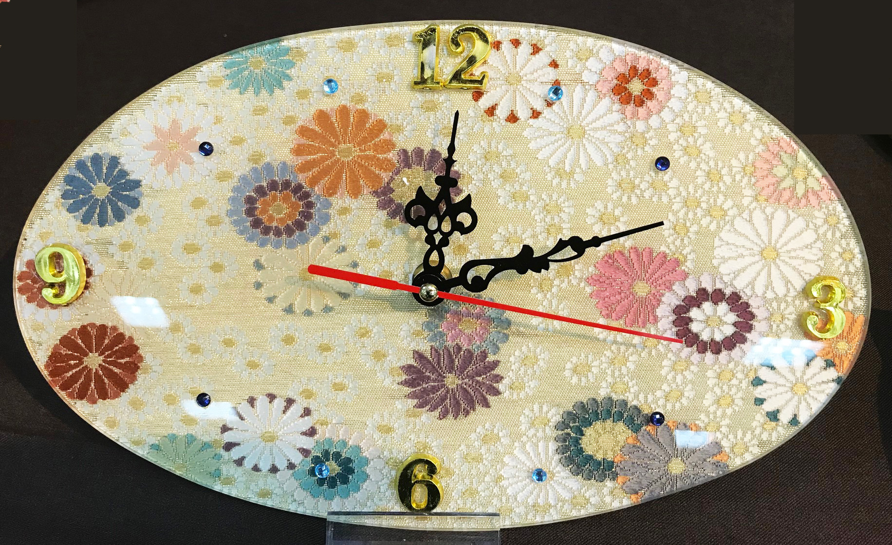 【リメイク硝子加工代】西陣織時計(帯地楕円小菊)