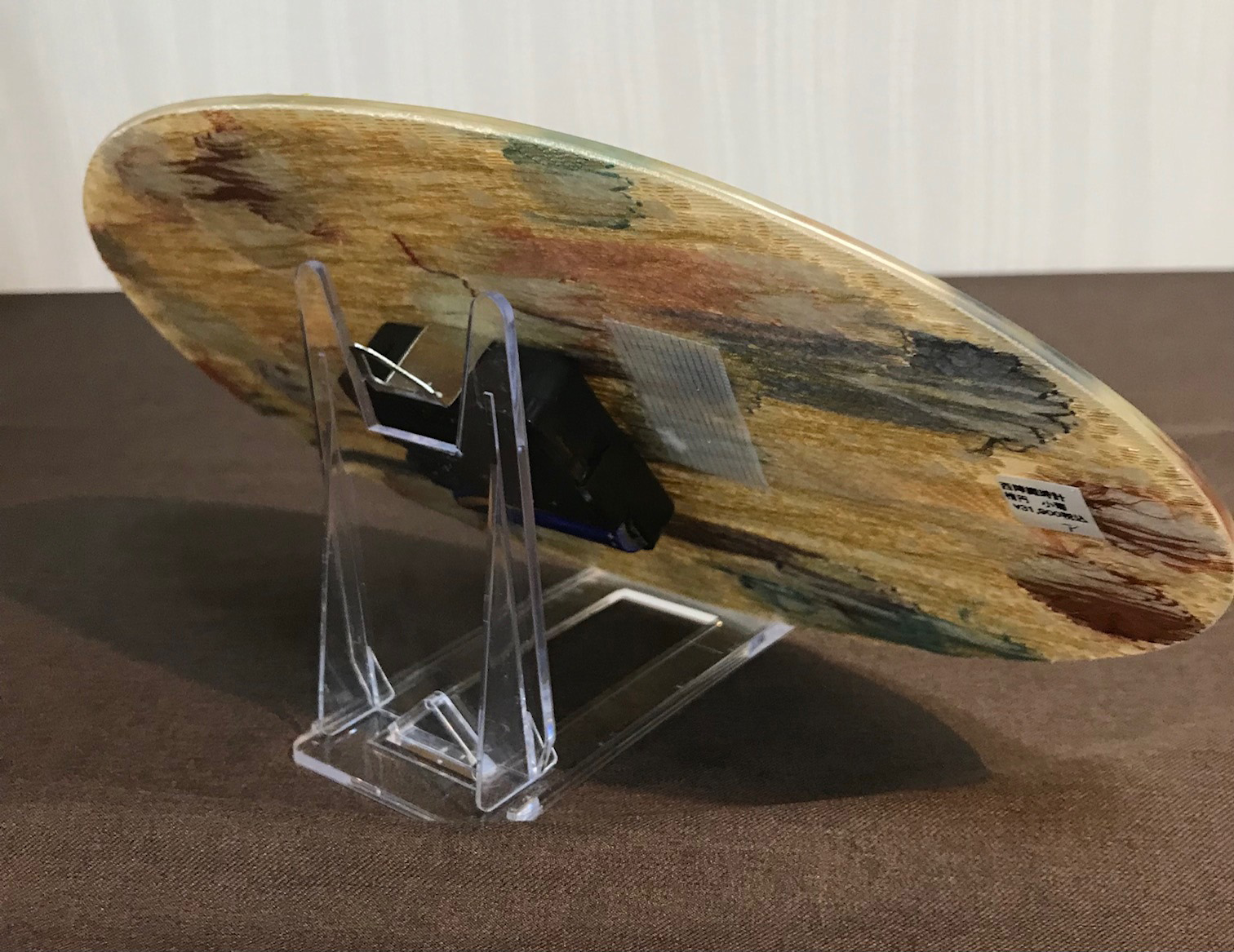 思い出の柄でオリジナルの時計を作ってみませんか?【商品情報】 ●サイズ 18×28㎝楕円 ●素材 :表面はガラス、裏は樹脂 ●中の素材:帯地他 ●厚み 3mm 又は5mm