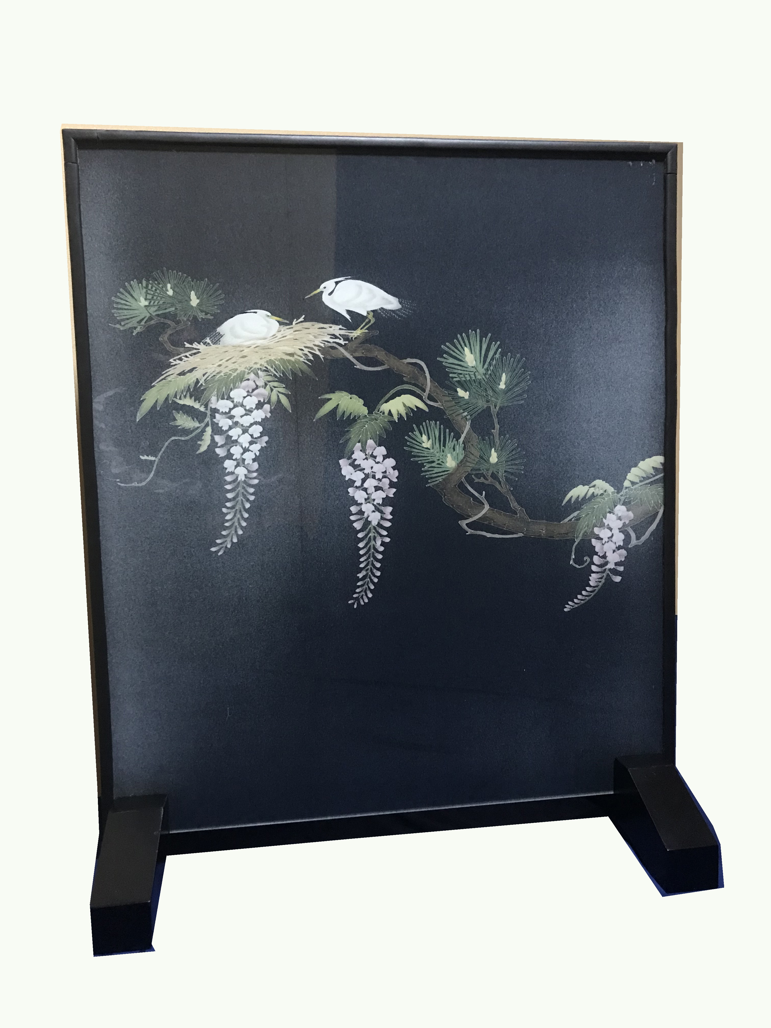 ・作品名:ガラス衝立「鷺の巣ごもり」