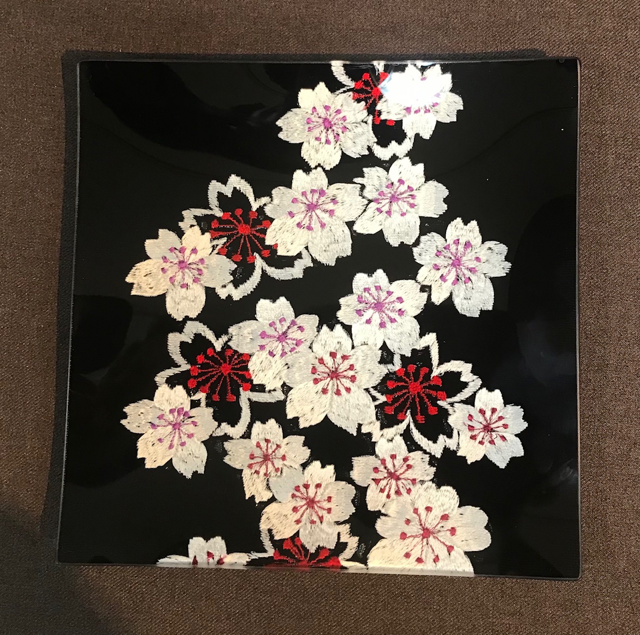 15cm角皿「ガラス器(桜刺繍衿)」皿立付