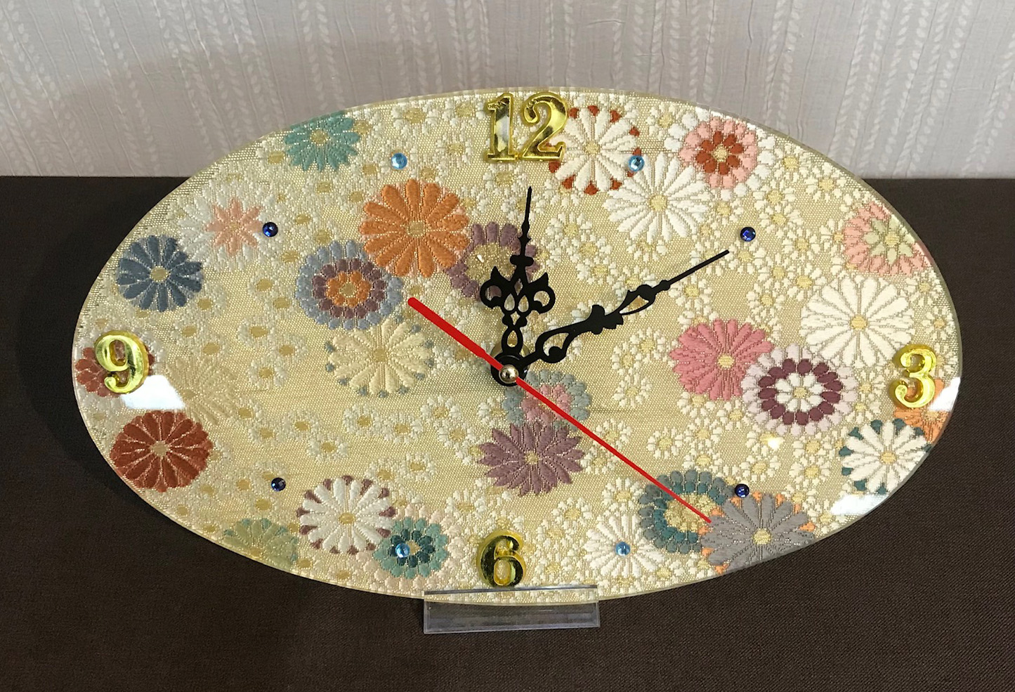 【リメイク硝子加工代】西陣織時計(帯地楕円小菊)