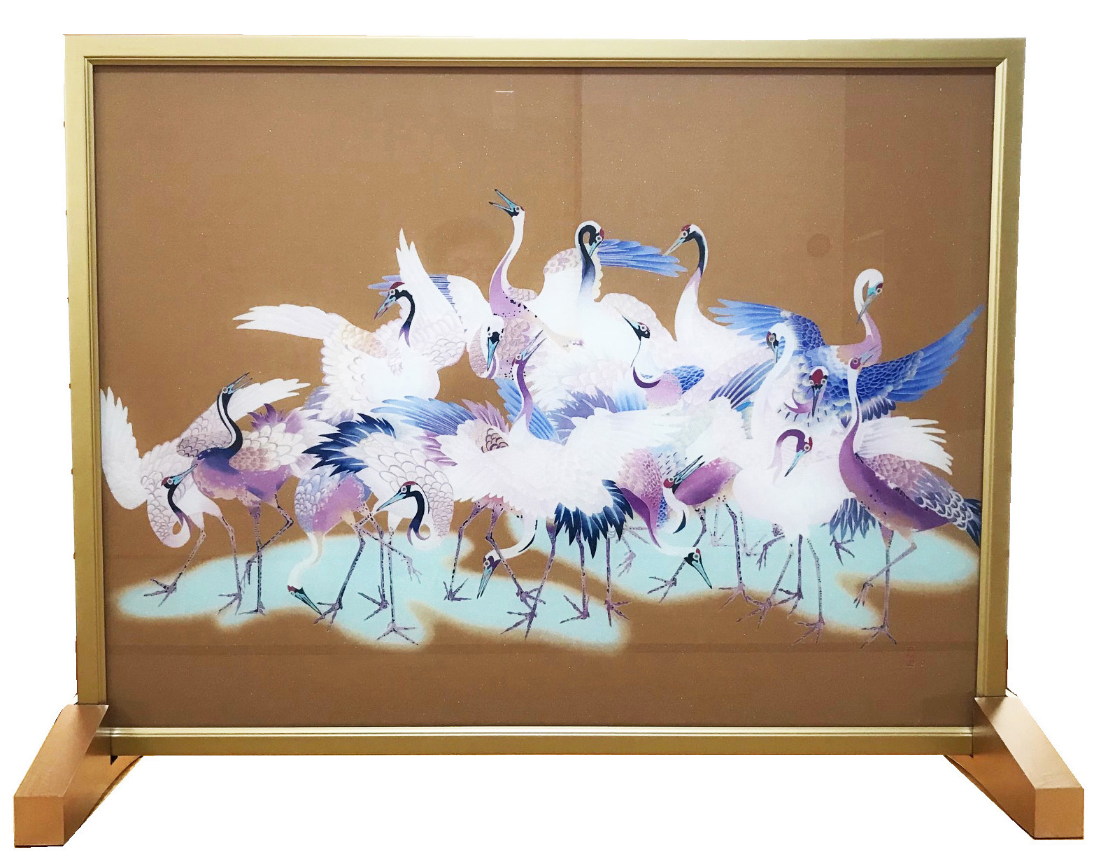 ●屏風絵:手描加賀友禅染、ちりめん一越、絹100%