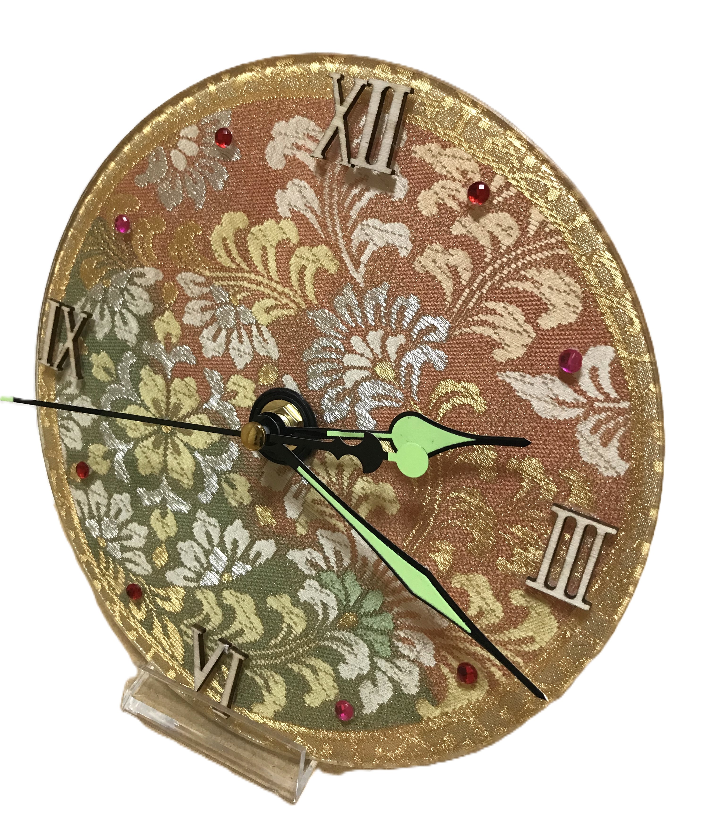 思い出の柄でオリジナルの時計を作ってみませんか?【商品情報】 ●サイズ 18cm丸皿 ●素材 表面:ガラス ●中の素材:シルク他 ●裏面:樹脂 ●厚み 3mm ●その他 厚箱入り