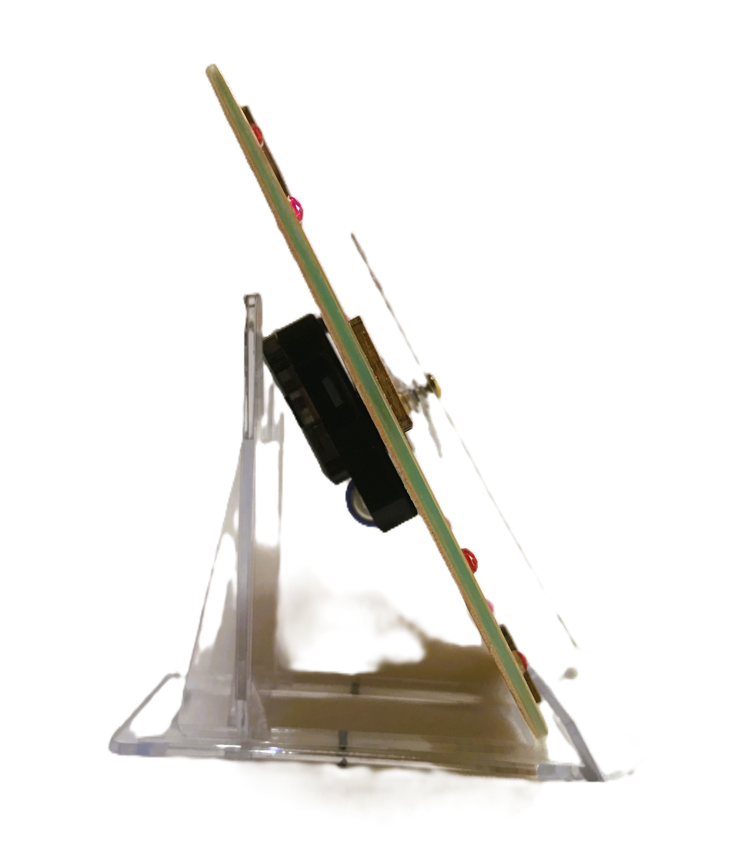・中心に10㎜の穴を開け、時計ユニットをはめます。文字盤にはアラビヤ数字の文字を貼ります。