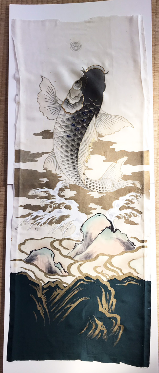 ②預かった初着を解き、目立った汚れ等があればしみ落とす。又は経年の汚れがあれば、柄足しか、金加工で汚れを分からなくする。